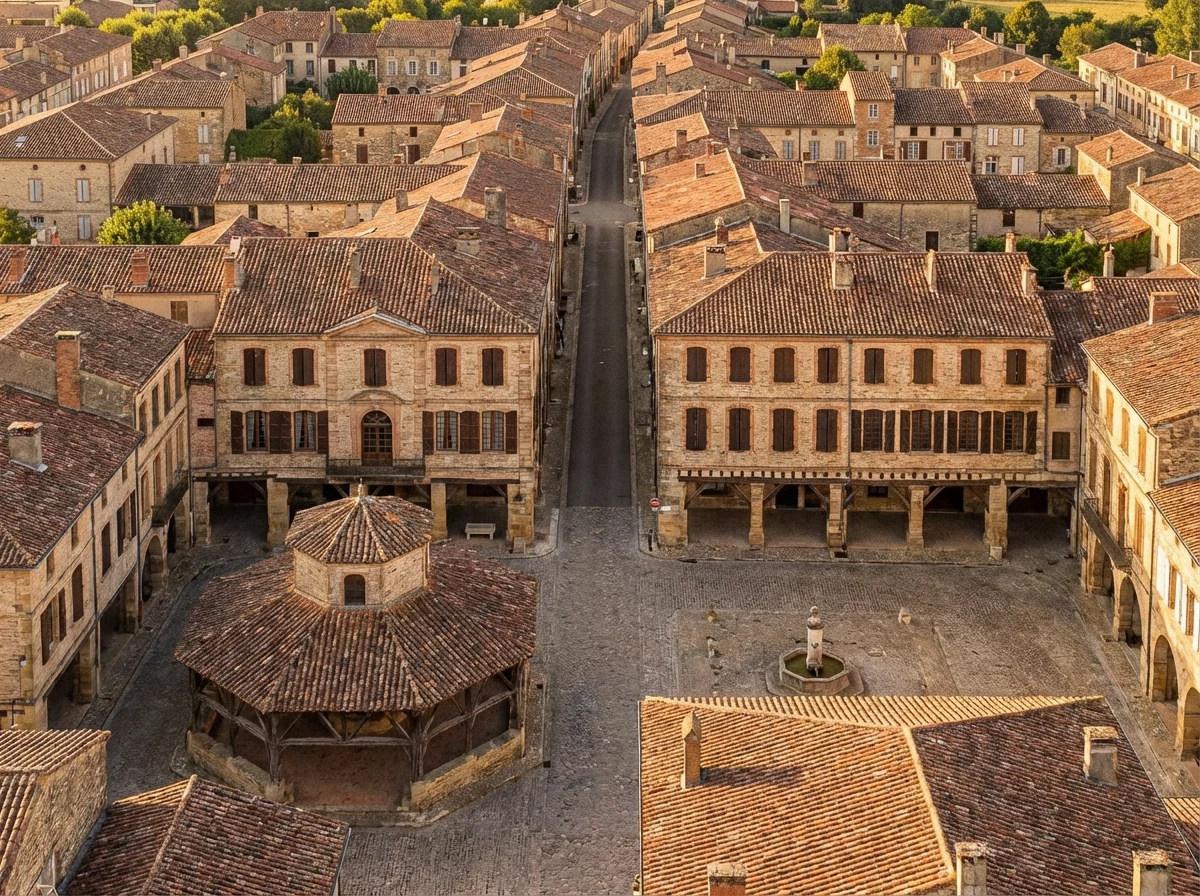 Les bastides sont des villages construits selon un schéma très organisé durant le Moyen Âge, souvent sur un plan rectangulaire. Les maisons, uniformément construites avec des murs robustes en brique ou en pierre, reflètent cette structure organisée. Elles possèdent généralement de larges fenêtres conçues pour capter la lumière mais également pour fortifier les constructions contre les attaques potentielles de l’époque.